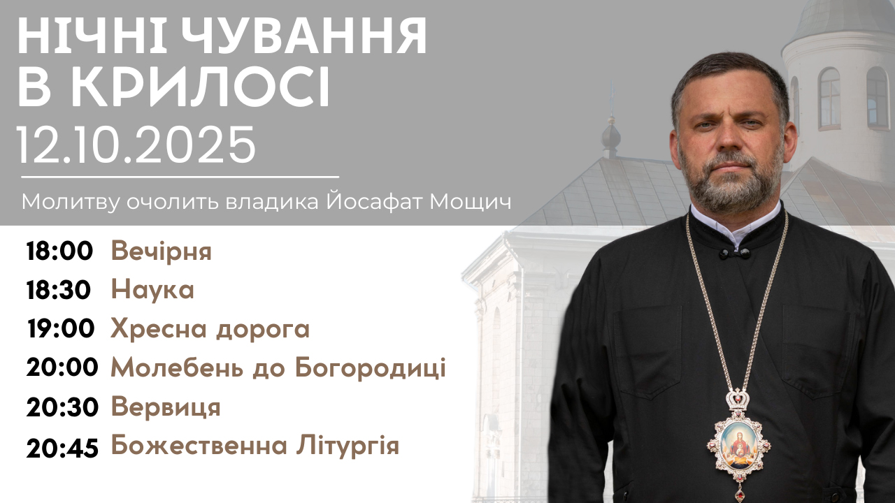 У неділю, 12 жовтня, у Патріаршому прокатедральному соборі Успіння Пресвятої Богородиці у Крилосі відбудуться традиційні молитовні чування у стіп Галицької чудотворної ікони Матері Божої з уділенням повного відпусту. Цього місяця моління очолить Владика Йосафат Мощич, Єпарх Чернівецький. Початок о 18:00 год.