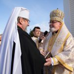 Святкові урочистості завершилися спільною молитвою, освяченням ювілейного хреста, а також врученням пам’ятних подарунків — ікони святого апостола Якова та жезла Отцю і Главі УГКЦ.