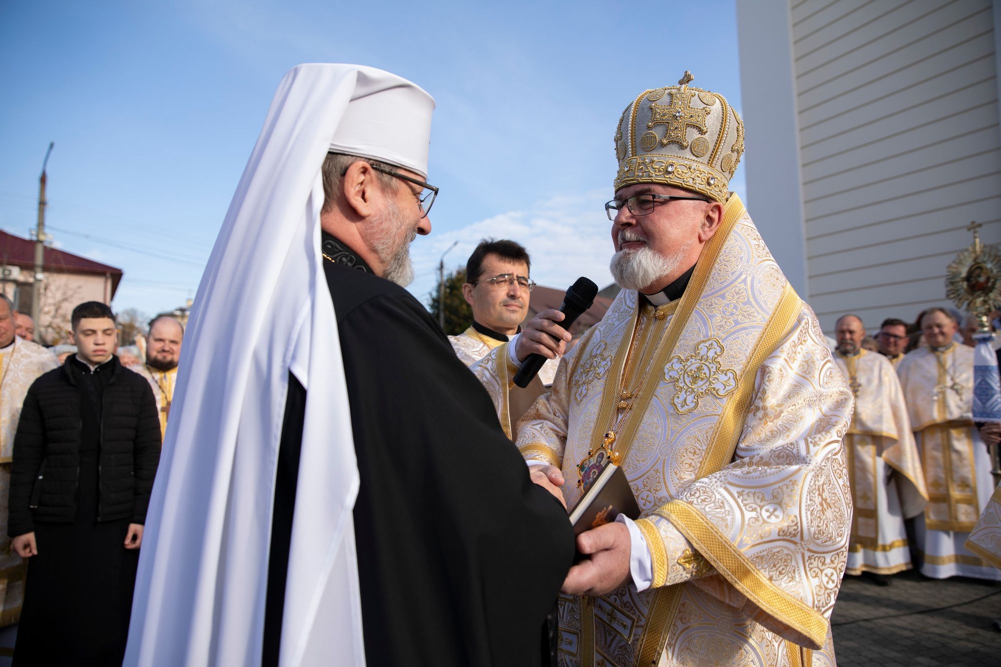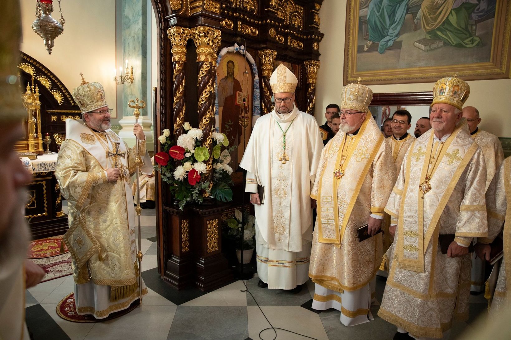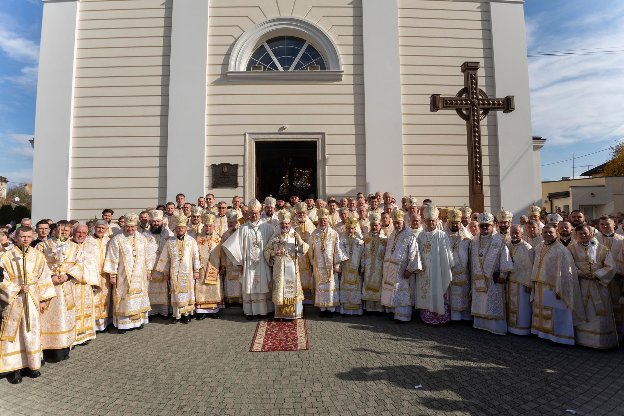 Святкові урочистості завершилися спільною молитвою, освяченням ювілейного хреста, а також врученням пам’ятних подарунків — ікони святого апостола Якова та жезла Отцю і Главі УГКЦ.