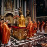 Під час обходу святині духовенство процесійною ходою несло Плащаницю, а за ними з сумом слідували вірні, вшановуючи Пречисте Тіло Господнє.