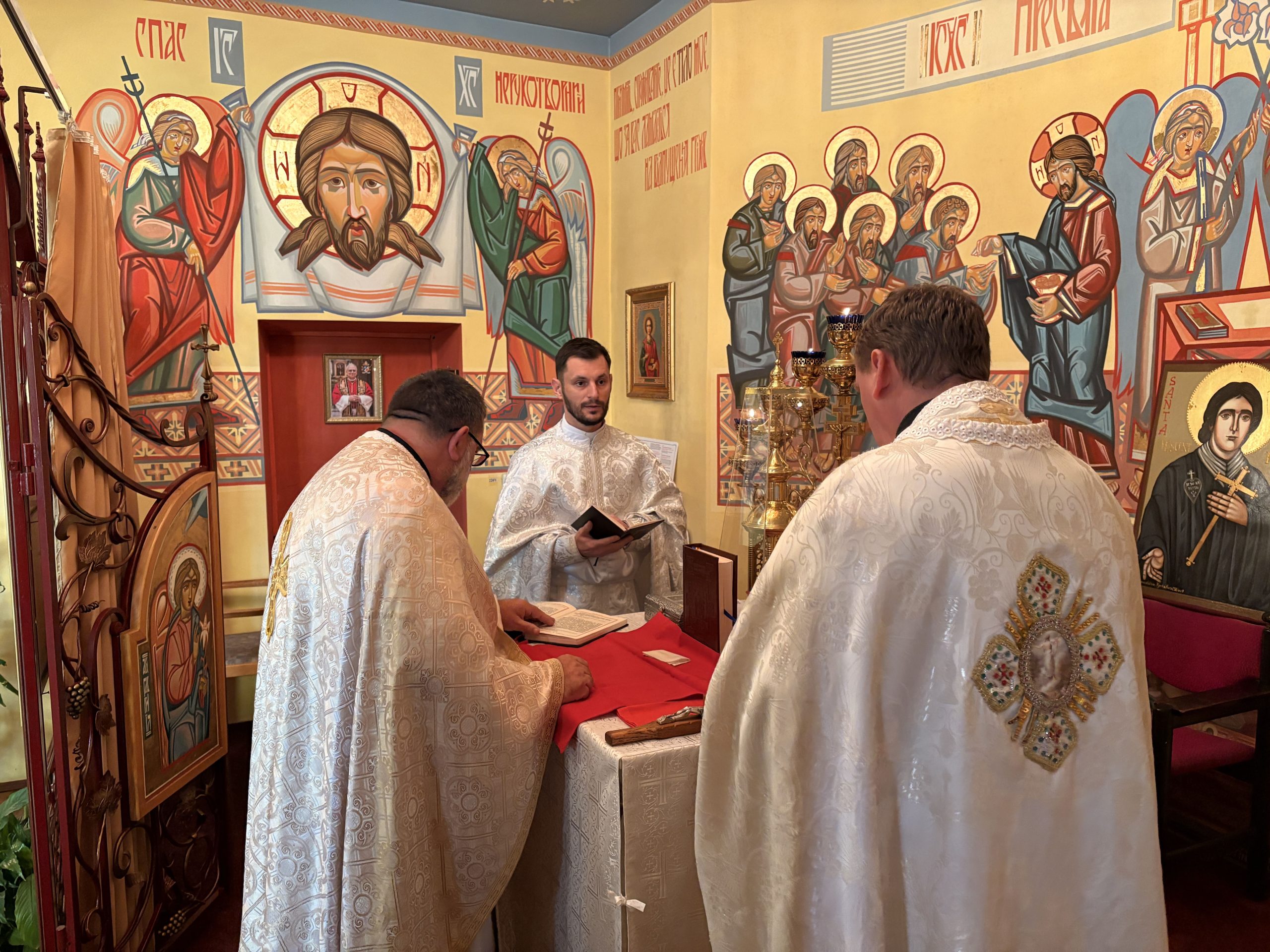 Божественна Літургія відбулася у каплиці святого апостола і євангелиста Луки, що розташована на п’ятому поверсі медичного центру. Очолив богослужіння екзорцист о. Володимир Лось, якому співслужили о. Руслан П’яста та капелан лікарні о. Юрій Валійон.